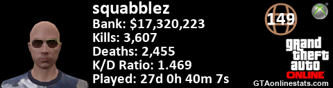 <a href="http://GTAonlinestats.com/showplayer/squabblez"><img src="http://GTAonlinestats.com/signature/squabblez/sig.png" alt="squabblez" border="0" /></a>