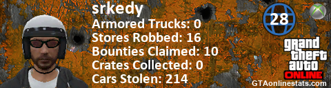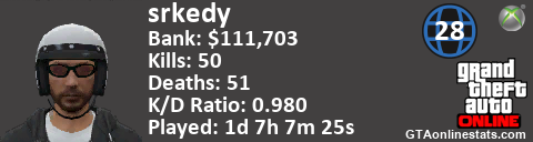 <a href="http://GTAonlinestats.com/showplayer/srkedy"><img src="http://GTAonlinestats.com/randomsignature/srkedy/sig.png" alt="srkedy" border="0" /></a>