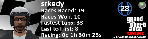 <a href="http://GTAonlinestats.com/showplayer/srkedy"><img src="http://GTAonlinestats.com/racesignature/srkedy/sig.png" alt="srkedy" border="0" /></a>