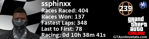 <a href="http://GTAonlinestats.com/showplayer/ssphinxx"><img src="http://GTAonlinestats.com/racesignature/ssphinxx/sig.png" alt="ssphinxx" border="0" /></a>