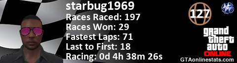 <a href="http://GTAonlinestats.com/showplayer/starbug1969"><img src="http://GTAonlinestats.com/racesignature/starbug1969/sig.png" alt="starbug1969" border="0" /></a>