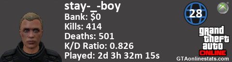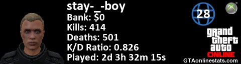 [URL=http://GTAonlinestats.com/showplayer/stay-_-boy][IMG]http://GTAonlinestats.com/dmsignature/stay-_-boy/sig.png[/IMG][/URL]