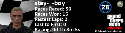 [URL=http://GTAonlinestats.com/showplayer/stay-_-boy][IMG]http://GTAonlinestats.com/racesignature/stay-_-boy/sig.png[/IMG][/URL]