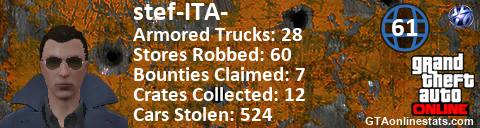 <a href="http://GTAonlinestats.com/showplayer/stef-ITA-"><img src="http://GTAonlinestats.com/crimesignature/stef-ITA-/sig.png" alt="stef-ITA-" border="0" /></a>