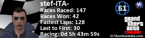 <a href="http://GTAonlinestats.com/showplayer/stef-ITA-"><img src="http://GTAonlinestats.com/racesignature/stef-ITA-/sig.png" alt="stef-ITA-" border="0" /></a>