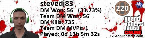 [URL=http://GTAonlinestats.com/showplayer/stevedj83][IMG]http://GTAonlinestats.com/dmsignature/stevedj83/sig.png[/IMG][/URL]