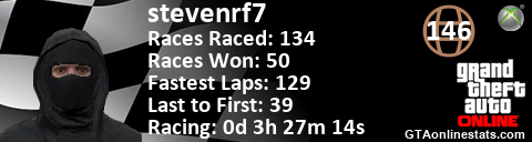 [URL=http://GTAonlinestats.com/showplayer/stevenrf7][IMG]http://GTAonlinestats.com/racesignature/stevenrf7/sig.png[/IMG][/URL]