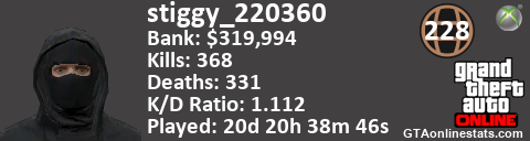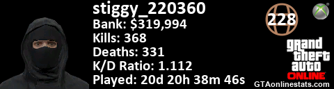 <a href="http://GTAonlinestats.com/showplayer/stiggy_220360"><img src="http://GTAonlinestats.com/randomsignature/stiggy_220360/sig.png" alt="stiggy_220360" border="0" /></a>