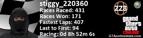 [URL=http://GTAonlinestats.com/showplayer/stiggy_220360][IMG]http://GTAonlinestats.com/racesignature/stiggy_220360/sig.png[/IMG][/URL]