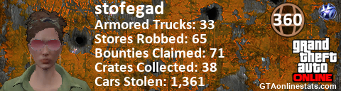 [URL=http://GTAonlinestats.com/showplayer/stofegad][IMG]http://GTAonlinestats.com/randomsignature/stofegad/sig.png[/IMG][/URL]
