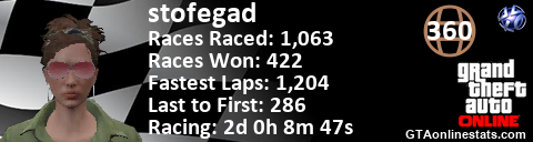 <a href="http://GTAonlinestats.com/showplayer/stofegad"><img src="http://GTAonlinestats.com/racesignature/stofegad/sig.png" alt="stofegad" border="0" /></a>