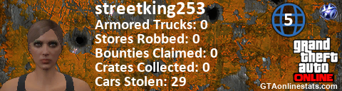[URL=http://GTAonlinestats.com/showplayer/streetking253/3][IMG]http://GTAonlinestats.com/crimesignature/streetking253/3/sig.png[/IMG][/URL]