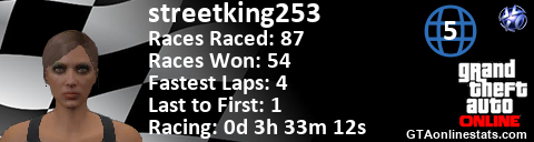 [URL=http://GTAonlinestats.com/showplayer/streetking253/3][IMG]http://GTAonlinestats.com/racesignature/streetking253/3/sig.png[/IMG][/URL]