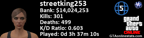 <a href="http://GTAonlinestats.com/showplayer/streetking253/3"><img src="http://GTAonlinestats.com/signature/streetking253/3/sig.png" alt="streetking253" border="0" /></a>