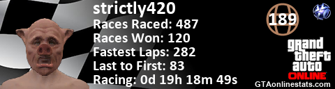 <a href="http://GTAonlinestats.com/showplayer/strictly420"><img src="http://GTAonlinestats.com/racesignature/strictly420/sig.png" alt="strictly420" border="0" /></a>