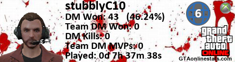 [URL=http://GTAonlinestats.com/showplayer/stubblyC10/2][IMG]http://GTAonlinestats.com/dmsignature/stubblyC10/2/sig.png[/IMG][/URL]