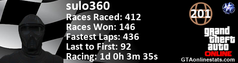 [URL=http://GTAonlinestats.com/showplayer/sulo360][IMG]http://GTAonlinestats.com/racesignature/sulo360/sig.png[/IMG][/URL]