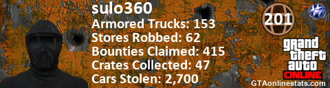 <a href="http://GTAonlinestats.com/showplayer/sulo360"><img src="http://GTAonlinestats.com/dmsignature/sulo360/sig.png" alt="sulo360" border="0" /></a>
