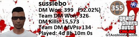 <a href="http://GTAonlinestats.com/showplayer/susslebo"><img src="http://GTAonlinestats.com/signature/susslebo/sig.png" alt="Susslebo" border="0" /></a>