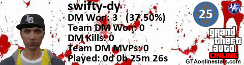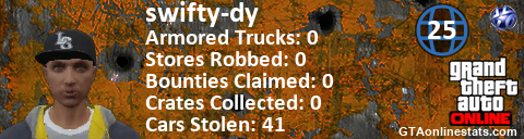 [URL=http://GTAonlinestats.com/showplayer/swifty-dy/2][IMG]http://GTAonlinestats.com/signature/swifty-dy/2/sig.png[/IMG][/URL]