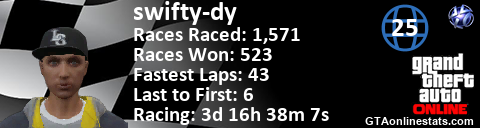 <a href="http://GTAonlinestats.com/showplayer/swifty-dy/2"><img src="http://GTAonlinestats.com/racesignature/swifty-dy/2/sig.png" alt="swifty-dy" border="0" /></a>