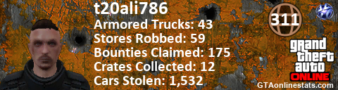 <a href="http://GTAonlinestats.com/showplayer/t20ali786"><img src="http://GTAonlinestats.com/crimesignature/t20ali786/sig.png" alt="t20ali786" border="0" /></a>