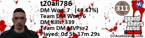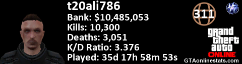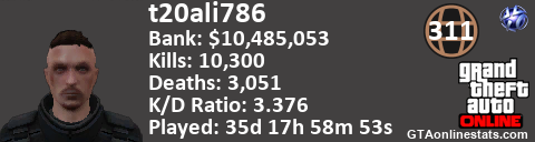 <a href="http://GTAonlinestats.com/showplayer/t20ali786"><img src="http://GTAonlinestats.com/signature/t20ali786/sig.png" alt="t20ali786" border="0" /></a>