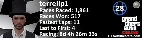 <a href="http://GTAonlinestats.com/showplayer/terrellp1"><img src="http://GTAonlinestats.com/racesignature/terrellp1/sig.png" alt="terrellp1" border="0" /></a>