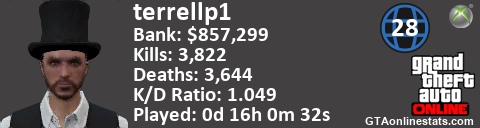 <a href="http://GTAonlinestats.com/showplayer/terrellp1"><img src="http://GTAonlinestats.com/dmsignature/terrellp1/sig.png" alt="terrellp1" border="0" /></a>