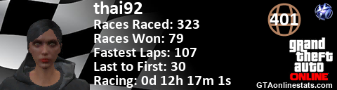 [URL=http://GTAonlinestats.com/showplayer/thai92][IMG]http://GTAonlinestats.com/racesignature/thai92/sig.png[/IMG][/URL]