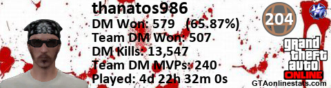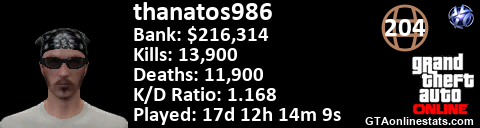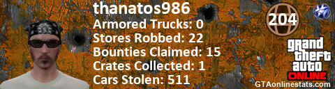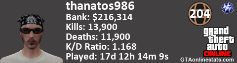 <a href="http://GTAonlinestats.com/showplayer/thanatos986"><img src="http://GTAonlinestats.com/randomsignature/thanatos986/sig.png" alt="Thanatos986" border="0" /></a>
