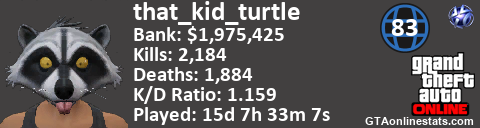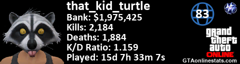 <a href="http://GTAonlinestats.com/showplayer/that_kid_turtle"><img src="http://GTAonlinestats.com/dmsignature/that_kid_turtle/sig.png" alt="that_kid_turtle" border="0" /></a>