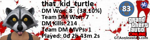 [URL=http://GTAonlinestats.com/showplayer/that_kid_turtle][IMG]http://GTAonlinestats.com/dmsignature/that_kid_turtle/sig.png[/IMG][/URL]