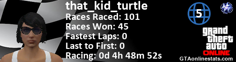 <a href="http://GTAonlinestats.com/showplayer/that_kid_turtle/2"><img src="http://GTAonlinestats.com/racesignature/that_kid_turtle/2/sig.png" alt="that_kid_turtle" border="0" /></a>
