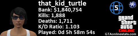 <a href="http://GTAonlinestats.com/showplayer/that_kid_turtle/2"><img src="http://GTAonlinestats.com/dmsignature/that_kid_turtle/2/sig.png" alt="that_kid_turtle" border="0" /></a>