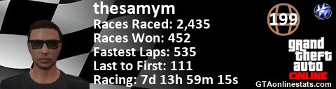<a href="http://GTAonlinestats.com/showplayer/thesamym"><img src="http://GTAonlinestats.com/racesignature/thesamym/sig.png" alt="TheSamyM" border="0" /></a>