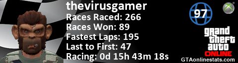 <a href="http://GTAonlinestats.com/showplayer/thevirusgamer"><img src="http://GTAonlinestats.com/racesignature/thevirusgamer/sig.png" alt="TheVirusGamer" border="0" /></a>