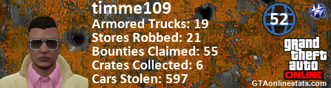 [URL=http://GTAonlinestats.com/showplayer/timme109][IMG]http://GTAonlinestats.com/crimesignature/timme109/sig.png[/IMG][/URL]