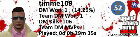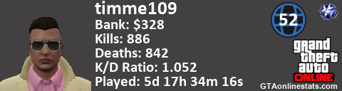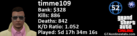 [URL=http://GTAonlinestats.com/showplayer/timme109][IMG]http://GTAonlinestats.com/dmsignature/timme109/sig.png[/IMG][/URL]