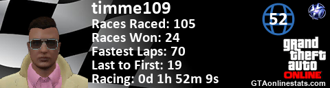 <a href="http://GTAonlinestats.com/showplayer/timme109"><img src="http://GTAonlinestats.com/racesignature/timme109/sig.png" alt="timme109" border="0" /></a>