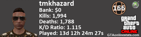 <a href="http://GTAonlinestats.com/showplayer/tmkhazard"><img src="http://GTAonlinestats.com/randomsignature/tmkhazard/sig.png" alt="TMKHaZaRD" border="0" /></a>