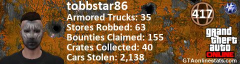 <a href="http://GTAonlinestats.com/showplayer/tobbstar86"><img src="http://GTAonlinestats.com/randomsignature/tobbstar86/sig.png" alt="tobbstar86" border="0" /></a>