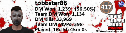 [URL=http://GTAonlinestats.com/showplayer/tobbstar86][IMG]http://GTAonlinestats.com/dmsignature/tobbstar86/sig.png[/IMG][/URL]