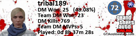 [URL=http://GTAonlinestats.com/showplayer/tribal189][IMG]http://GTAonlinestats.com/signature/tribal189/sig.png[/IMG][/URL]