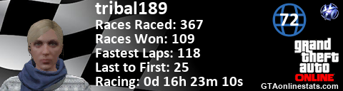 <a href="http://GTAonlinestats.com/showplayer/tribal189"><img src="http://GTAonlinestats.com/racesignature/tribal189/sig.png" alt="tribal189" border="0" /></a>