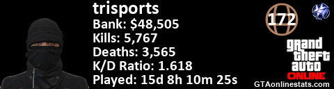 <a href="http://GTAonlinestats.com/showplayer/trisports"><img src="http://GTAonlinestats.com/randomsignature/trisports/sig.png" alt="trisports" border="0" /></a>