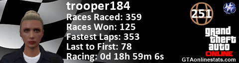 <a href="http://GTAonlinestats.com/showplayer/trooper184"><img src="http://GTAonlinestats.com/racesignature/trooper184/sig.png" alt="TROOPER184" border="0" /></a>
