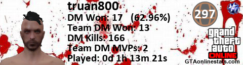 [URL=http://GTAonlinestats.com/showplayer/truan800][IMG]http://GTAonlinestats.com/dmsignature/truan800/sig.png[/IMG][/URL]