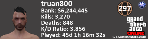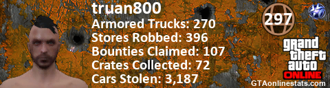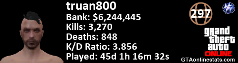 [URL=http://GTAonlinestats.com/showplayer/truan800][IMG]http://GTAonlinestats.com/signature/truan800/sig.png[/IMG][/URL]