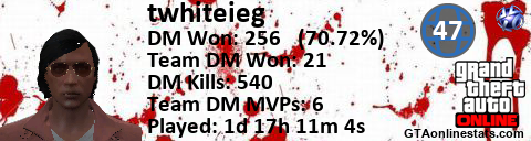 [URL=http://GTAonlinestats.com/showplayer/twhiteieg/2][IMG]http://GTAonlinestats.com/dmsignature/twhiteieg/2/sig.png[/IMG][/URL]